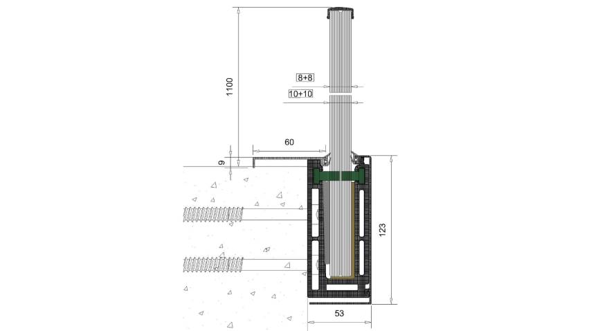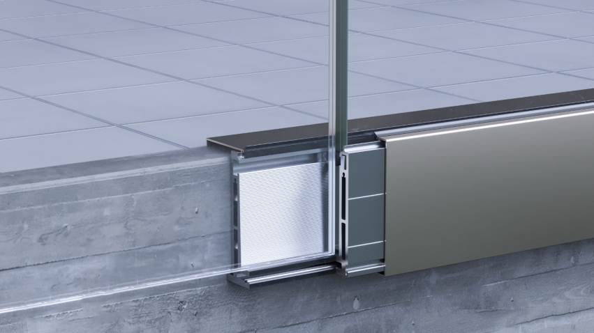 çerçevesiz cam korkuluklar için mükemmeldir. Tasarımı, yeni inşaatlar sırasında çimento şapları altındaki uygulamalar için en uygun