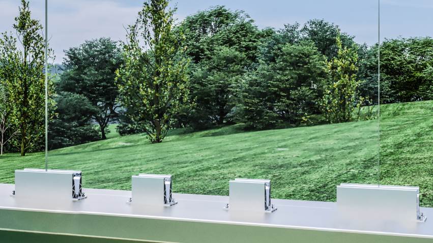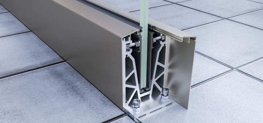 Çerçevesiz cam korkuluklar için alüminyum bazalı sistemde 15 cm & 30 cm alüminyum baza takozları ile cam sabitlenir. Alüminyum