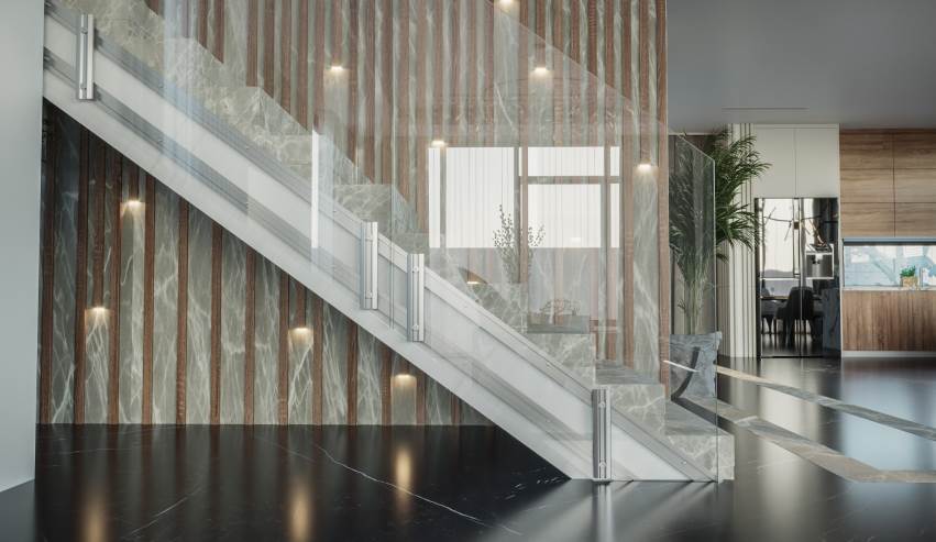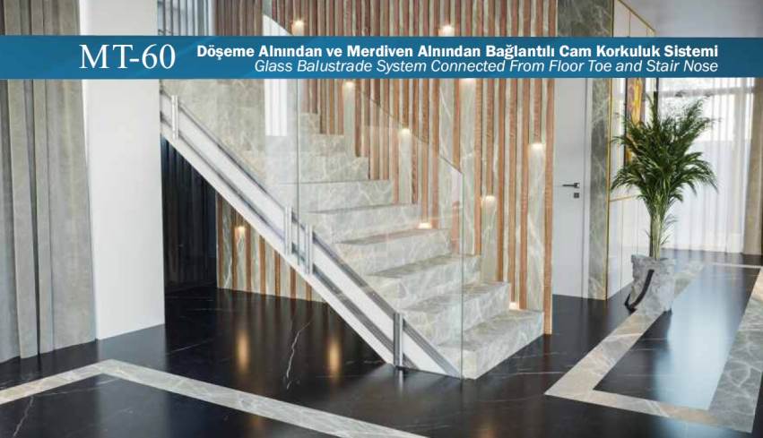 Döşeme Alnından ve Merdiven Alnından Bağlantılı Cam Korkuluk Sistemi